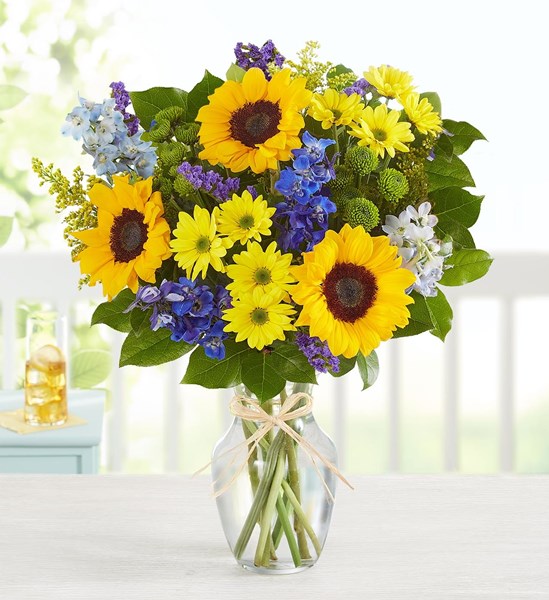 A rich gathering of yellow and orange blooms, with pops of bright pink and purple, it's more than a gift - it's a way to express how you feel inside.